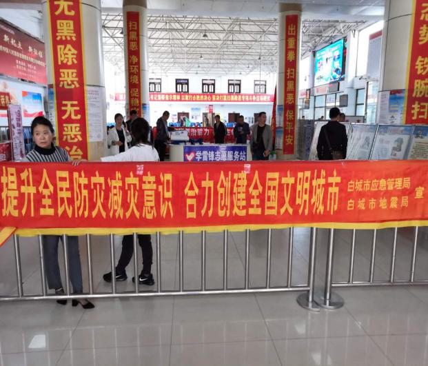 在全国第11个防灾减灾日到来之际,5月10日下午,由白城市澳门皇冠博彩牵头,联合白城市应急管理局和洮北区应急管理局工作人员走进市长途汽车客运站,开展防震减灾科普知识集中宣传活动。进入候车大厅,首先映入眼帘的是主题宣传标语“提高灾害防治能力,构筑生命安全防线”、“提升全民防灾减灾意识,合力创建全国文明城市”,防震减灾科普知识宣传展板一字排开,迎候旅客。过往旅客不仅领取了宣传资料,认真观看展板内容,还在现场进行了咨询。工作人员还深入旅客候车区,进行面对面的宣传交流,并登上大客车发放宣传品,新闻记者也抓拍下了每个互动场景。这是白城市澳门皇冠博彩官网防震减灾科普知识宣传走进公共场所宣传活动之一。